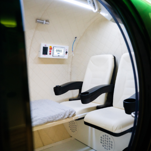 sHBOT sessions are typically 45–60 minutes. You’ll be comfortably positioned inside a dedicated hyperbaric chamber while the pressure is adjusted slowly and safely. The experience is calm, non-invasive and entirely guided — many Revivers use the time to rest, reflect or even listen to music.
